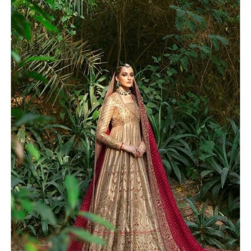 Pishwas Lehenga Golden Bridal Dress Pakistani is an epitome of royalty and elegance. This breathtaking Pishwas Dress has a premium silk fabric embellished with lavish designs, gota, and zardosi details. Red dupatta gives a glamorous touch to the overall Bridal look. Pishwas: Pakistani Bridal Pishwas in the gold shade is a stunning attire to wear at [...]