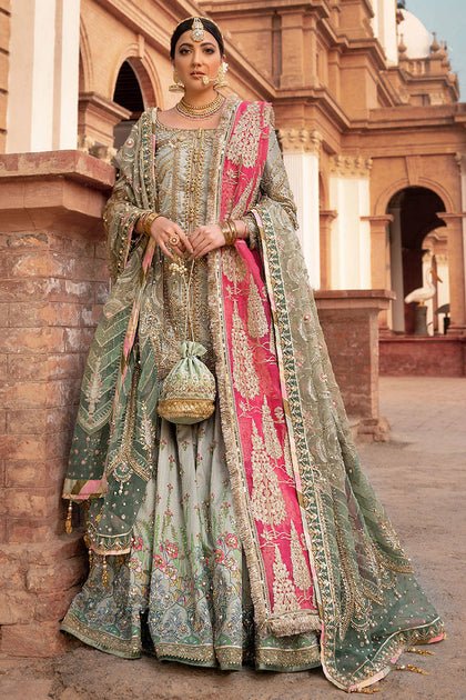 Pakistani Bridal Lehenga Frock in Mesuri Fabric is a breathtaking masterpiece gracefully embellished with floral designs and applique work. Intricate designs and lavish details make this perfectly stitched Pakistani Bridal Dress your foremost priority for the wedding day. Frock: Pakistani Bridal Frock in pure mesuri is a stunning choice to pair with Lehenga. The peplum [...]